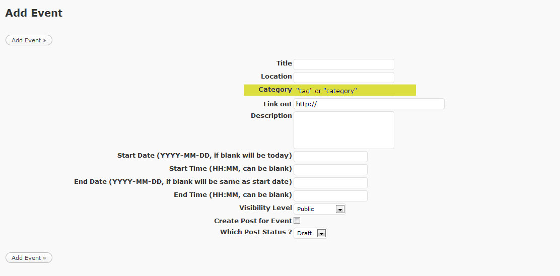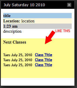 OK I need someone to add to wordpress events calendar plug in running in wordpress 2.9.1. ---- I can email the files---- ****All that needs to be done is add an input field under the add events panel that will save as a post_tag and then call a list of upcoming events based on if they have the same post tag. Just want it to display the title (permalink) and date only.*** ----------See Highlights on Attached Pics for Example ------------