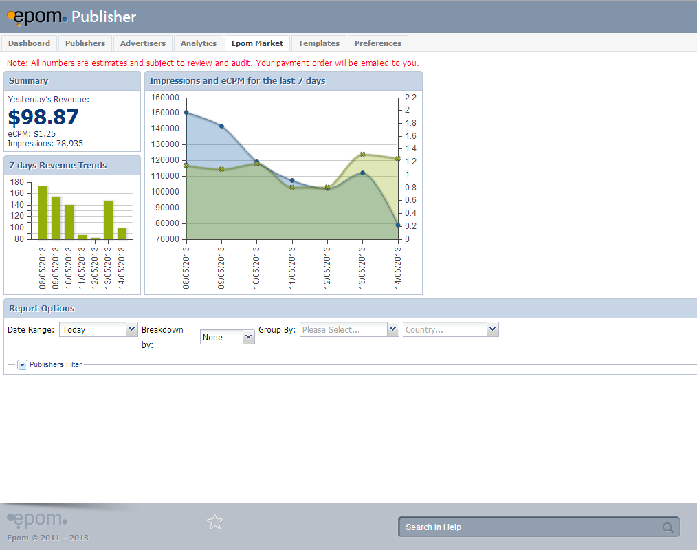 98$ for 78K impressions ? What's the catch ? Considering that i know the giant networks usually go for 0.50 eCPM rates....