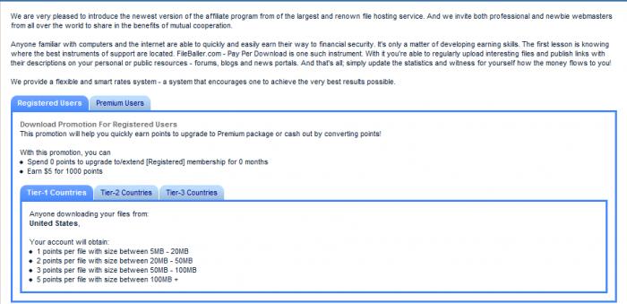 FileBaller providing you with the highest payouts per download service. We pay from $0.60 to $10.00+ USD per download! We average around $0.70 per download, that means if you get 1000 downloads you will earn around $700.00. We also give a bonus based on the files size downloaded. If the file you upload is over 100mb's you will earn 5$ for every 200 downloads! We will provide you with the tools and information to start earning today! The same idea of uploading files to rapidshare or any other public upload service can be used with FileBaller. The more traffic you bring to your files, the more people have the possibility to download your files. The more people download your files, the more money you make! What type of files should I promote? There are millions of uploaded files on the internet, but you want to find the one that will be the most popular and get the most downloads. These normally are videos of some popular event, like a soccer sports tournament, pdf’s or free ebooks, game demos, game cheats, music files… the list goes on and on. Just make sure the file isn’t copyrighted or sexually explicit. Some ideas to make money uploading files and links: - conversion sites, such as doc to PDF conversion site - indie bands/artists – musicians looking to lock their content - ebooks - instructional videos (e.g. guitar lessons) - mobile application downloads and/or in-app monetization - royalty free sound packs - access to premium membership content - software downloads - software features, unlocking features for completion of a brief survey Any movies, music, graphics, ebooks, etc. can also be used as long as you own the rights to the copyrighted file or is the creator. Where to promote your files and links? 1. Seed files with torrents and submit them to torrent websites. Hundreds of thousands of people use torrents daily, creating endless oppurtunities for you! For example, you can create a zip file with a passworded zip inside. Leave a readme.txt saying to retrieve the password you have to download it at your download link here on FileBaller. You will be surprised at how many people will download your text file. 2. Post to forums and message boards There are millions of users on the internet all looking at message boards and forums. Many forums have sections for downloads, and some are even dedicated to solely providing files to others. Upload a file that you know will be popular and post it to some active file sharing boards, and let the downloads begin. 3. Use Youtube Uploading to Youtube can bring you high traffic results to your files resulting in earning you thousands of dollars. By simply creating a video about a program, song, band, etc, and giving the user a download link in the video description – You will score you thousands of downloads and dollars with this proven method. 4. Use Peer to Peer Sharing Many people use peer-to-peer file sharing networks, like limewire or emule, to share files. You can use this as a spinoff of the bittorent technique, but instead of seeding your file just share it on these networks and let the downloads start rolling in! The same idea of uploading files to rapidshare or any other public upload service can be used with FileBaller. The more traffic you bring to your files, the more people have the possibility to download your files. The more people download your files, the more money you make! fileballer.com