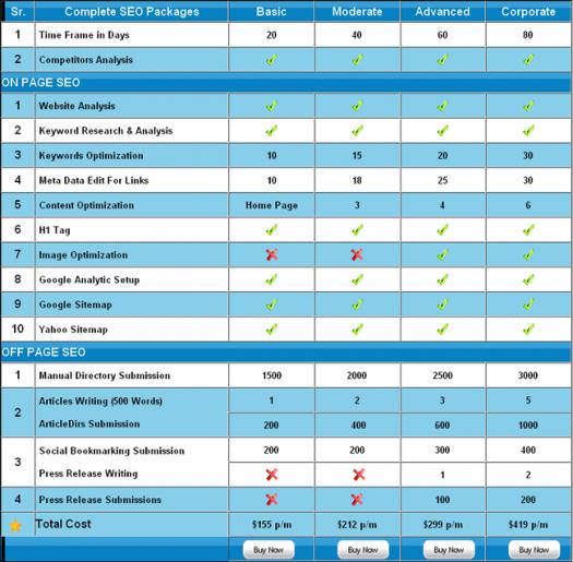 i need some good coder who could fix table coded on following link... http://www.evowebservices.com/seo-packages PM me your IM/ Email details if any could do it Website is in Joomla Tables are suppose to be attached file, Thank you
