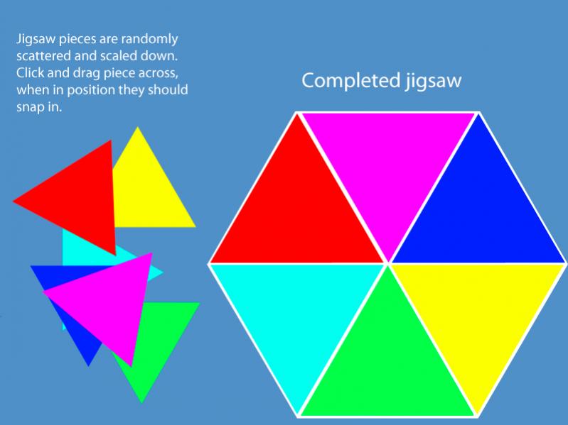 I need a flash jigsaw. Be able to drag and rotate jigsaw 6 pieces into place. The jigsaw pieces are triangles. I will provide the layout and the jigsaw pieces. I will need the completed fla so that I can insert the revised images. The rotation should be 90 degree turns. See attached images for layout. I need a quick turn around i.e. a few hours. Any questions then please fire away. Will pay via paypal.