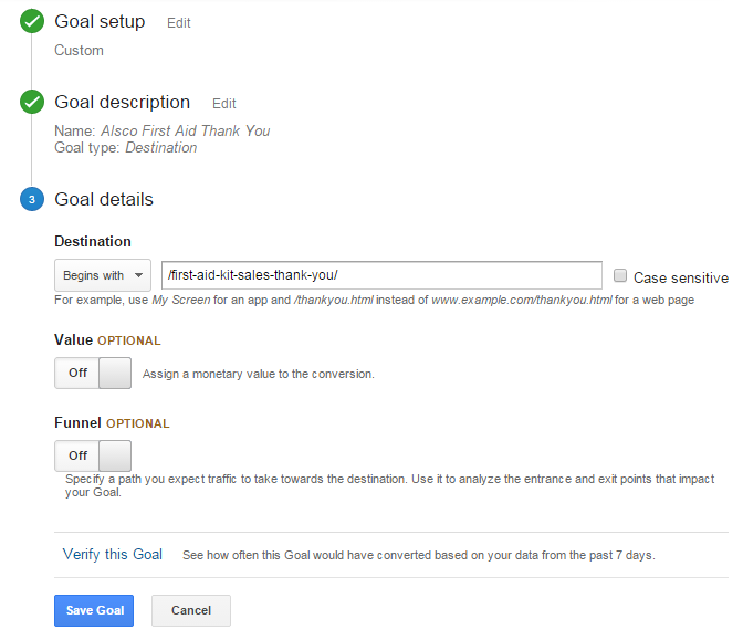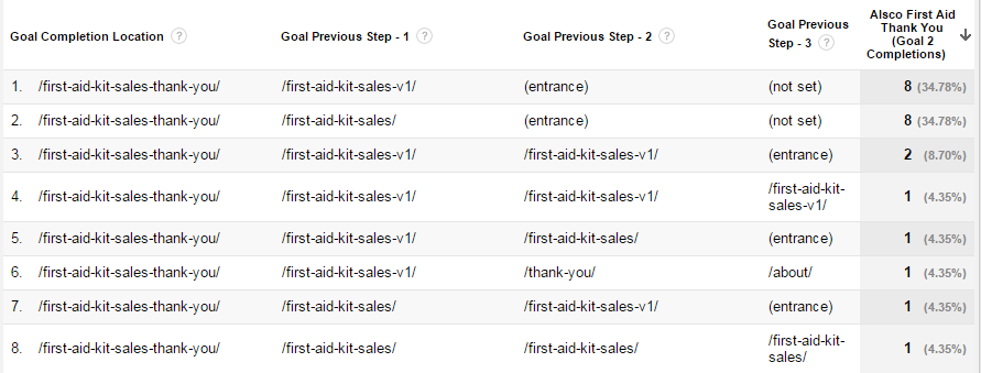Hi, I am running a Content Experiment between the original (/First-aid-kit-sales/) and variation 1 (/first-aid-kit-sales-v1/). The two images attached represent the same time period. As image 2 shows, the original has registered conversions while the variation 1 has registered zero conversions after 128 sessions. Image 1 shows (reporting>conversions>goals>reverse goal path) that there has been some conversions due variation 1. I also personally know they have been conversions due to variation 1. Why are there no conversions indicated for variation 1 in the content experiment? Where am I going wrong? Warm regards, John Karanja