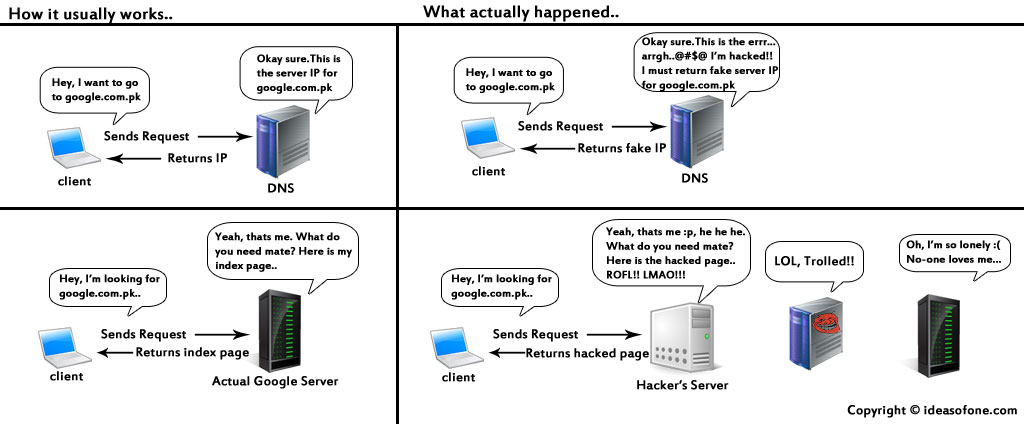 That's crazy! What is cache poisoning? How could anyone get into Google and Microsoft at the same time? Don't they have their own servers?