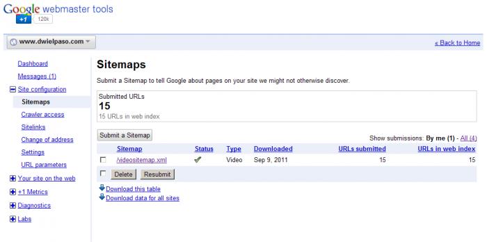 I have one big problem with video sitemap to displaying in google search result, "Its NOT DISPLAYING in google search!". Steps which I followed is : 1) I used GVS Plugin to create sitemap 2) I submitted to google webmaster tools and all videos are indexed there. 3) I cross check in Video Labs that if any error is there or not. 4) I also installed AllInOneSEO for better results, and keywords are also related to videos. 5) I also cross checked sitemap links and video links that if they are working properly or not, its working. 6) In google, When I am searching, It displays all my pages but No video as GVS plugin indicates in their marketing site. I am wondering where I am doing mistake? My site link : http://www.dwielpaso.com videositemap link : http://www.dwielpaso.com/videositemap.xml I attached screenshots of webmaster tools. Please help.
