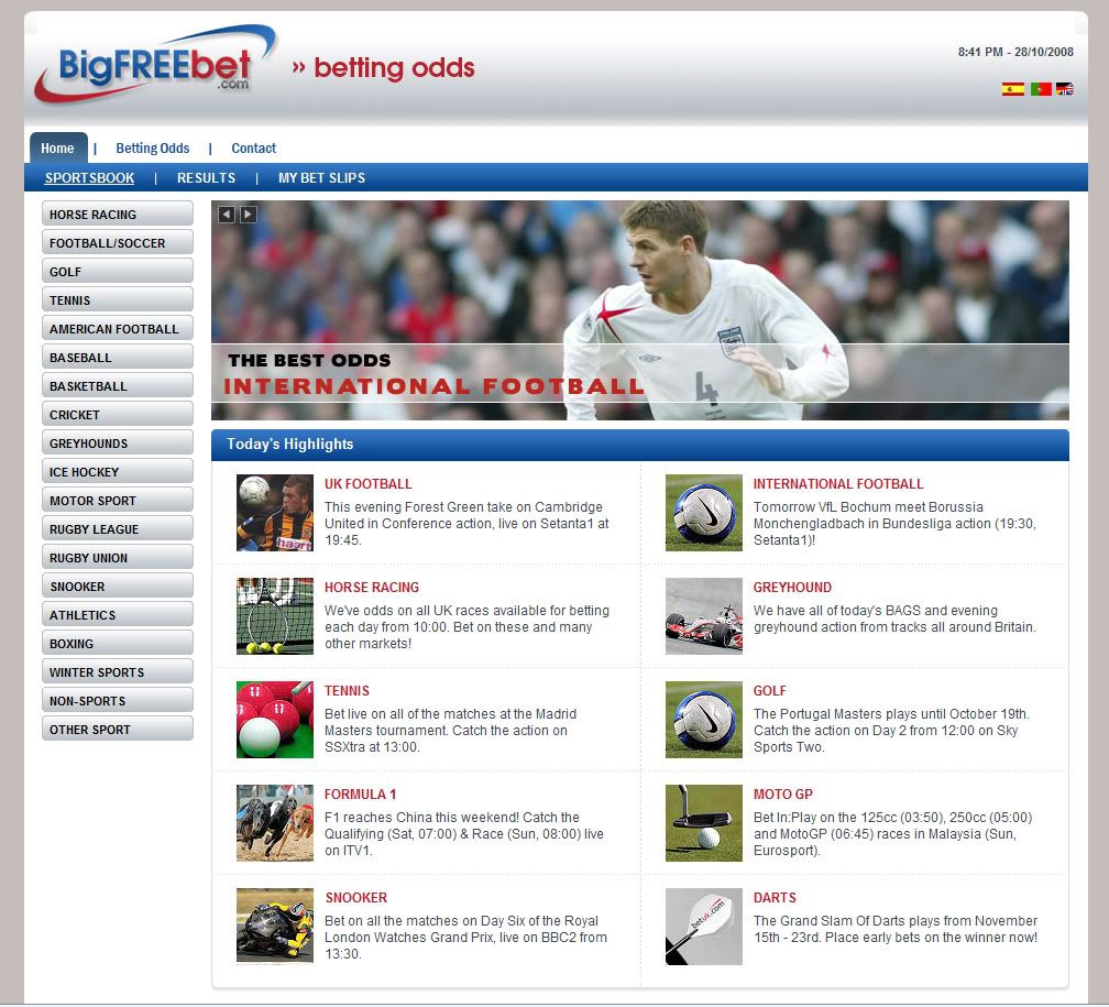 I dont think it looks bad, but if anything makes it look akward to me, its that between the bottom of the gray header bar, and the blue line (with the sportsbook link) there is a white space in between. maybe you could do something with that, or have the gray bar come down to the blue and see how it looks edit: or now that I think about it, get rid of the gray all together and/or put a professional looking image as the header, since the rest of the site is pretty clean.