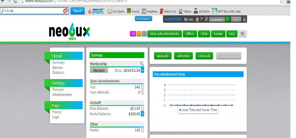 First of all you should read this -> How to ask a question Second of all, Support for neobux should be sent to their support people who can be reached at these emails: Or in their support forum. My personal opinion: Neobux seems very shady...