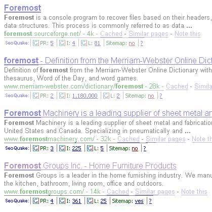 Hey guys, So, I know that there's many different Google Datacenters, and results between them will vary slightly, but why is this... I searched the word 'Foremost' in google. The company I work for is Foremost Groups, Inc., and were usually #4 in google for that keyword. But once in a while, there's two sites that jump above mine in google (ForemostMachinery.com and WebsterOnlineDictionary definition of Foremost). Why in the world would foremostmachinery.com ever rank higher than my site? All my site's numbers are higher (see image). Our site is PR4, they're PR3. We have 361 indexed pages, they have 225. We have almost double the amount of inbound links according to Yahoo Site Explorer. I realize that some of their IBLs may be from higher authority sites, but wouldn't that give them higher PR too? I don't get it. Any thoughts on this?