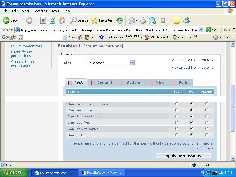 I made a lil forum a few days back : www.rocobaroco.co.cc Its a completely free forum site (PHPBB) , with free domain and free hosting, and I am using it for some experiments, before I can have a go at a VB with a premium hosting Now I would like to promote this site, and so I am giving some game links for free download. But I would like the user to atleast register to the forum, to acess those threads (that have download links) So, the problem is that i want to make the following link available only to the logined members and not to any unregistered/unlogined users : http://www.rocobaroco.co.cc/viewtopic.php?f=34&t=5 I am new to all this, so I dont know much. I have done a few settings for the users (refer rocobaroco.co.cc.jpg) but its not working, and even after setting 'No Acess' for the users, I can still acess those threads as an unregistered member This is what I would like it appear on screen when someone clicks on the above game link URL (refer rocobaroco1.jpg) So, how can I do that ?