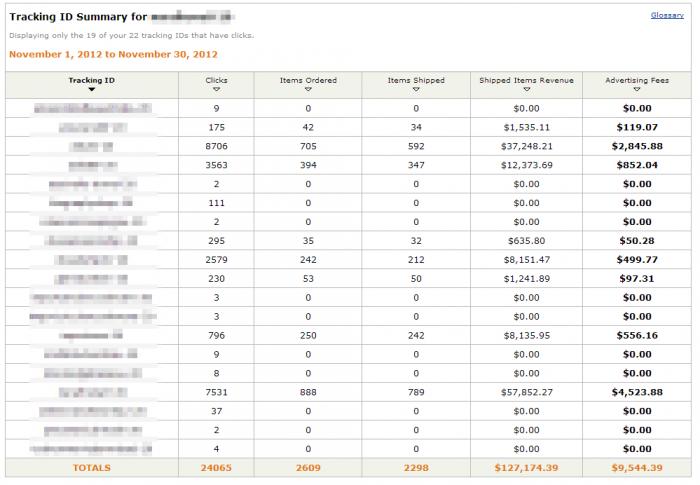 I think you misunderstand. That is not a daily report. That is a tracking id report. Each line essentially represents a single websites earnings for a full month although the big one is actually two websites. You can see not every website I operate has made money, in fact more than half of the sites I have are duds. If it was a daily report then I would have no problems showing you the date, but as the left hand column includes my tracking id I dont need anyone using google to identify my successful stores/websites and copying them. Some people are too lazy to do the research and hard work. Just so it is clear, I have quite a few sites that are not generating any money for a whole month. Conversely I have others that consistently deliver every single day. I did very little to any of my websites over the past two months as I have a fulltime job. This was suppose to be pay for christmas and birthday presents. Clearly is has been more successful than I ever dreamed but if I did not invest one more hour in it over the next 12 months I have no reason to expect any drop in revenue. But I am like anybody... I want more The sites are designed to look after themselves once I finish with them as I can't afford to be constantly blogging or building links etc etc. I try and build a new store or website every month or two months just to keep it expanding. Sometimes that does not happen. I probably spend as much time researching the store/website and keywords etc as I do building it. In the case of AOM I use the standard templates. I think my next site, which will have to be next year will be an FSB (Fresh Store Builder) site. They certainly look great and I think Carey has done a great job. I have an AOM site that made excellent money (about $600 in its first full month and then $1000pm for its next two months) for the first three months and then fell of Google's index and has never come back. No matter what I try I cant get it back . As far as I am concerned the concept is proven... it's just the google rank that is stopping it from performing and I am hoping FSB can recover that lost income. I will try it on fresh ideas as well but all of that will be in 2013.