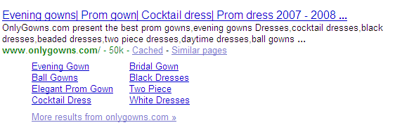 When i search the www.onlygowns.com in google. I find the result like attached photos showed. below the site.there will showed the other directory of this site in the google. So how to make my site like that? (PS:the result of the back link just 3518 in the yahoo. And the total back link just 8000.) Thanks for your help.