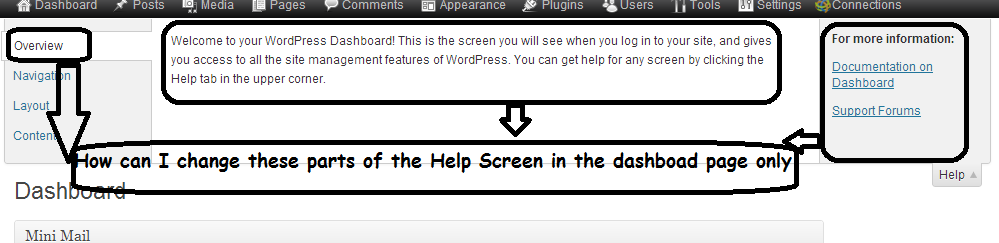 How can I edit the Help text on the dashboard on my wordpress site? Please check the attached image