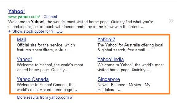 I mean for example on Google, I search for "yahoo" URL: http://img812.imageshack.us/img812/4999/pasal.jpg I want the similar formats, so wherever my domain is searched, different pages such as About Us, Contact, Information comes into that section under my domain. How can it be done???