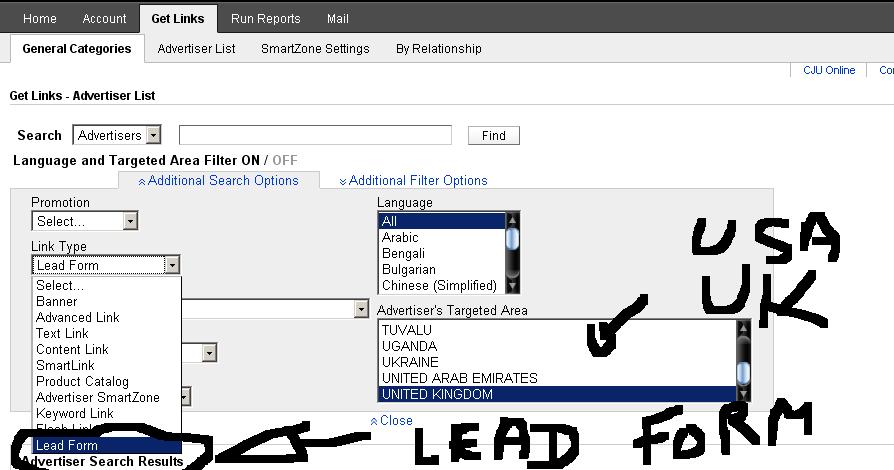 Plus try Lead not lead form, and other of these categories, sometimes advertisers are careless in their chooseing of categoroies in CJ.