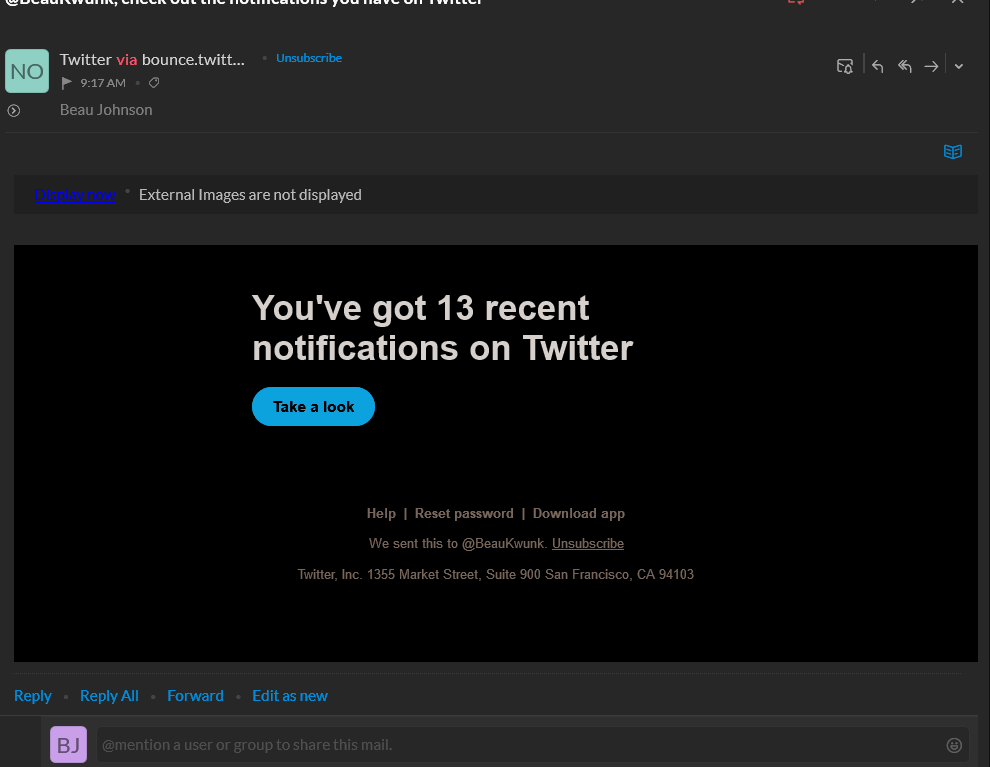 I'm receiving Notification emails from Twitter . . is there a place in Settings where I can tell Twitter not to send them? They look like the attached file. Thanks!