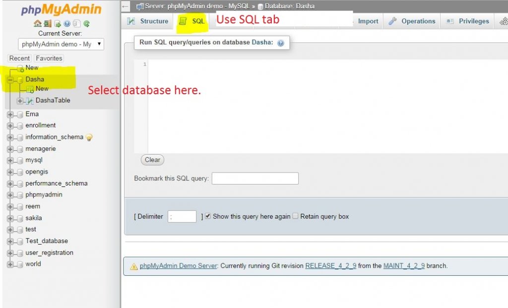 Hi. Using phpMyAdmin you can select database from the left side column (see attached file) You can also use this command to select the database USE database_name; Code (markup): before UPDATE wp_posts SET ping_status='closed' WHERE post_status = 'publish' AND post_type = 'post'; UPDATE wp_posts SET ping_status='closed' WHERE post_status = 'publish' AND post_type = 'page'; Code (markup): A sure shot way to know what database your site is using is to check the config file. Hope that helps