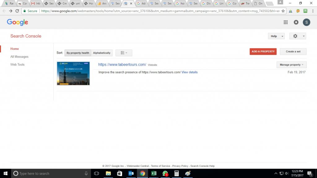 1. Select your site on your Google Search Console home page.