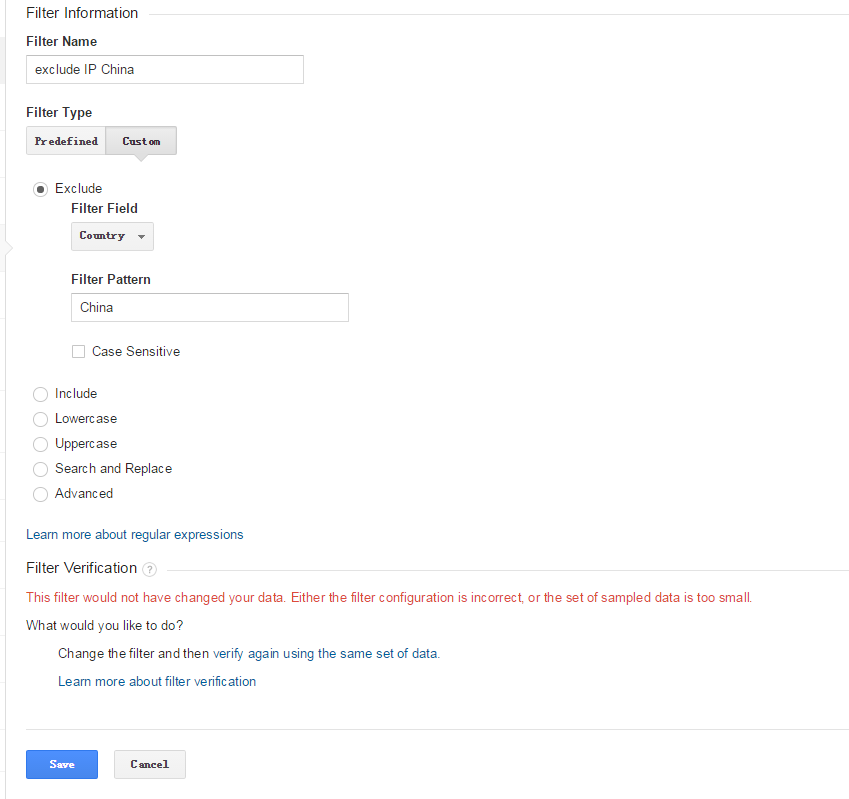 I use the filter to eliminate the spam traffic in referral traffic section. I did this by following this method: However, i receive this notice from google analytics like this: I did the above steps exactly according to the instruction. No mistake guaranteed. And i am sure that the data is not too small to be shown because i also tested this way in my other websites. Plus i have been waiting for more than 7 days to test again. All results in the same failure information. Please help me to correct this task. Thanks a lot.