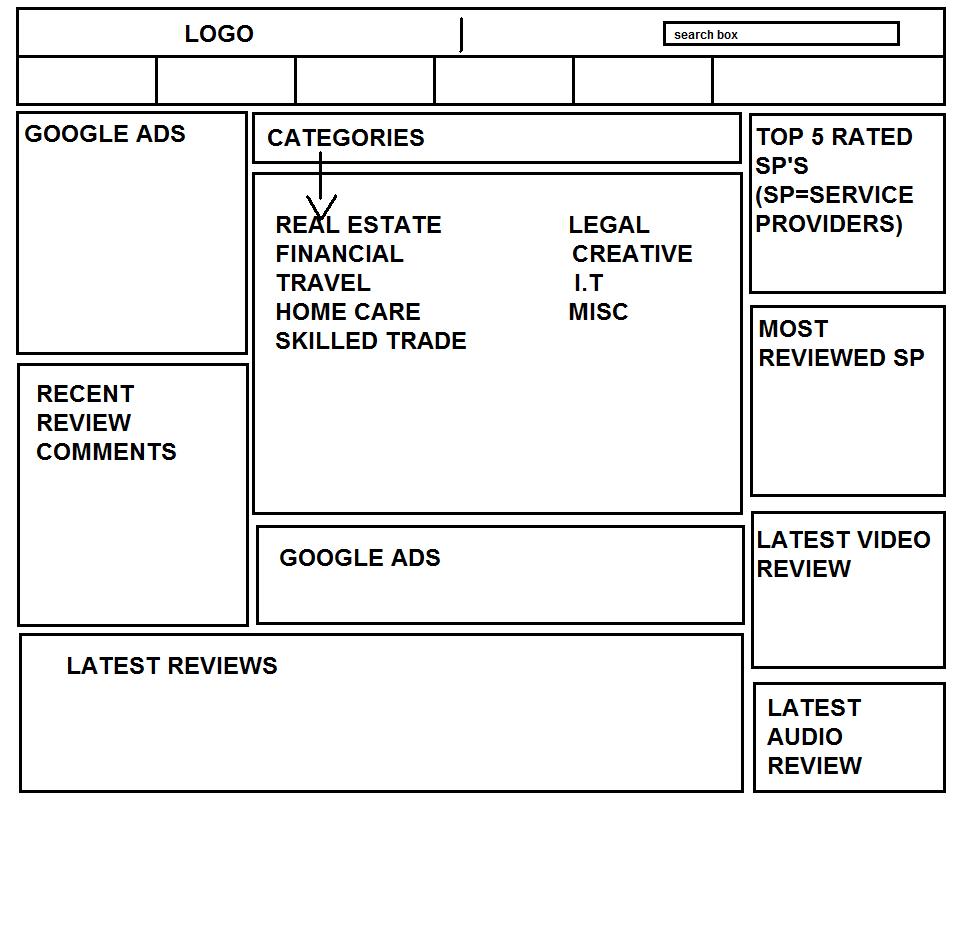 I will like to create a site where people will review services.... This is the basic idea of the site.. this should be able to be done with wordpress with a few plugins This is a basic feature list of the customer review site that we will like to create. It is similar to your complaintsbiard site. Feature List: Latest Reviews News and Stories Press Releases FAQ About Us Submit a Review Recent Review Comments Video and Audio Review(we will preferably like the reviewer to simply record there voice directly to the site or using a plugin from the site as opposed to using a piece of software and uploading the file. We will also like the ability to record the video at the site or in a plugin as opposed to recording it and uploading it. We will also like the upload option for both video and audio. If the plugin or direct recording cannot be done we will settle for the uploading alone but we will prefer something direct) Most Reviewed Service Lastest Video Review Latest Audio Review Top Reviewed companies Categories google ads Companies/service providers should join and create a page on the site. So lets say Marc Augustine comes and registers as a business consultant, a page reviewsite.com/marcaugustine will be created and users can now come and review this services provided. The review will be a simple multiple choice questionnaire with about 6 questions as well as a space for comments. The created page by the service provider will now have all the reviews on that page. Written, audio and video. When a company registers for the site it is free to get a page and receive reviews. If they will like to service of audio and video reviews, a fee must be paid. There should be a 14 day trial for the audio and video reviews. i attached an image of what i think the layout of the main page should look like please give me a quote