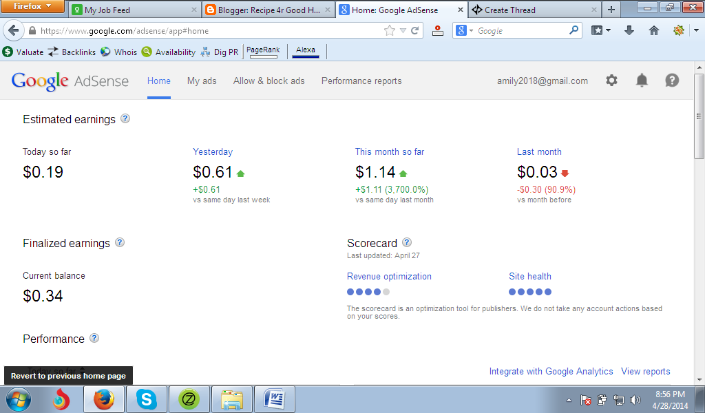I think I get google adsense but I can"t understand .please help me."http://recipeforgoodhealth1.blogspot.com/" where I can see my earn? some time I am going in dashboard but its not clear to me. could you PLEASE HELP ME??