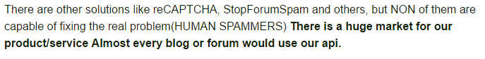 It is about NonFakeUsers. Trying to solve a real problem all across the internet.(human spammers)