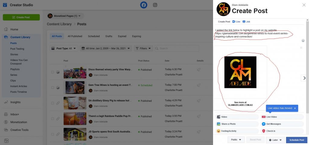 Hi all you wonderful people, some of which might be able to help me. I have a client who is posting scheduled posts from the Facebook Creative Studio application. Until recently she wasn't having any issues but now it is proving to be a real headache. What is happening? When she adds a hyperlink to a post back to her website all that displays in the Creative Studio preview window is her default image and website name. There is no featured image and excerpts. I have added a screen capture to show what is happening. We have tested it with some other websites and it works fine. But on her site it is not working. If someone can throw some light on why this is happening, I will be internally grateful. Steve