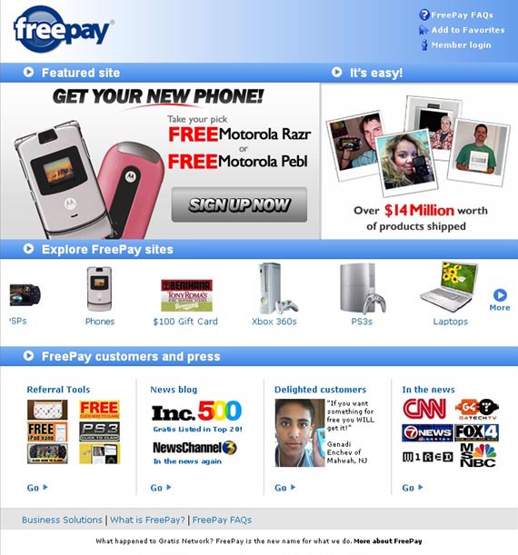 It's one of those free Xbox 360 schemes...you have to refer people and complete offer in order to receive it. I think there was a similar thread before. This time I wanna try that myself. I need 8 people to sign up, and complete one offer. Most of them are trial so if you don't like you can cancel them later but I ask you not to cancel within 30 days . You have to be US resident and new to freepay.com. Anyway, if you go here http://xbox360s.freepay.com/?r=30626686 to sign up and complete one offer I will paypal you $5 right away. Send me your email (after completion), and you'll get the money. As a bonus, if all goes well those 8 people will receive additional FREE PR3 links on one of my sites for one year.