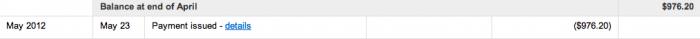 I know 1000$ isn't really 1000$ due to taxes... The adsense account is under my father's name, and I have been with Adsense for 2 years without a problem. Is this still violating the ToS? Here is a pic of april's earnings.