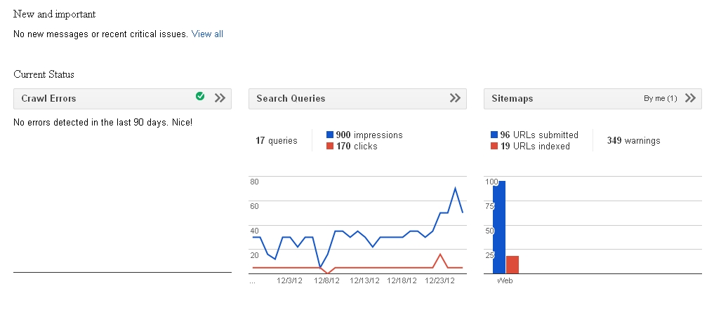 Good afternoon! Please help me to solve my problem! As I know in my Google Webmasters tools in sitemap the quantity of submitted URLs must be equal to the quantity of indexed URLs. But I have a different situation. As you can see on my printscreen there are 96 URLs submitted and 19 URLs indexed. I noticed that URLs indexed gradually reduce (there were 35 URLs indexed last month) in spite of constant adding of the new articles. My site is in the Russian language and another Russian Search engine – Yandex – indexes all my pages normally. There are more than 150 articles on my site. Maybe link of my site will help you to understand the problem better – intenglish.ru Site is on Joomla 2.5 CMS. Please help me to solve my problem. Thanks in advance!