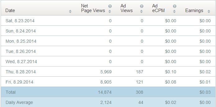 Hi I made a blog 2 weeks ago. I know that I really shouldn't expect any real money at 200 views per day. But the problem is even when I get ad clicks, infolinks doesnt pay. So far i have got 149 ad views and infolinks has only paid for about 10 ad views. The rest of the days i have got 30+ ad views but 0 revenue. I do get around 75 visitors each day from USA/Canada and i am sure some of them willingly or unwillingly hover over the in text ads. Is this common? Can someone tell me which service should i use, heres my blog and niche. http://zetasilon.blogspot.in/