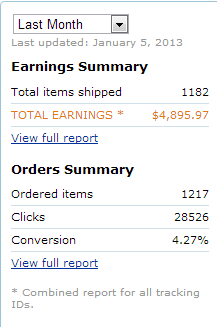 GAve out some very valuable info here. I'm going to do niche sites later in 2013... I see that with Amazon, if you're not focusing mainly on selling amazon products, you won't make much unless you have thousands of daily visitors.. Keep up the great work and thanks for posting...