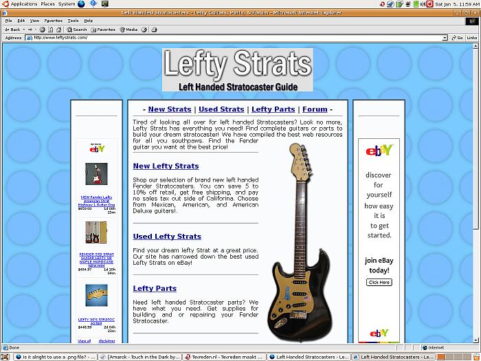 I built a website that has a pattern in the background and I wanted the logo to have a transparent background. I used a .png for the logo of www.leftystrats.com . Do pretty much all broswers support png files now? GIF's did not provide enough detail.