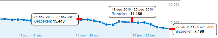 Hi... My site is dropping traffic.. Was very stable for several years, about 15000 visits per week... Sinds end of januari this year it started dropping, still getting less each week.. Currently only 7000 visits per week left... Please see stats image: I don't think it's Panda / farmers update, as it begun much earlier then end februari. And the site is in Netherlands.. As far as I know the Panda update was rolled out in US end februari, rest of world later... Is this Panda, or something else? Any suggestions are highly appreciated!