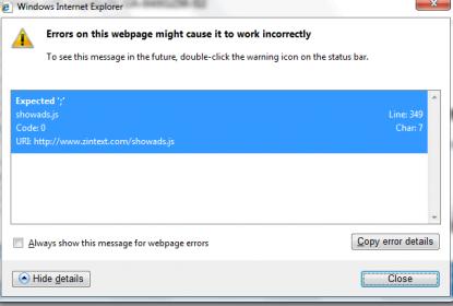 I have just added some javascript code to my site for an ad network. The ads show in FF and chrome but not in IE. I get the following error in the browser. PM me if you can help and how much you think it'll cost, need it doing asap today please. Thanks. Dave.
