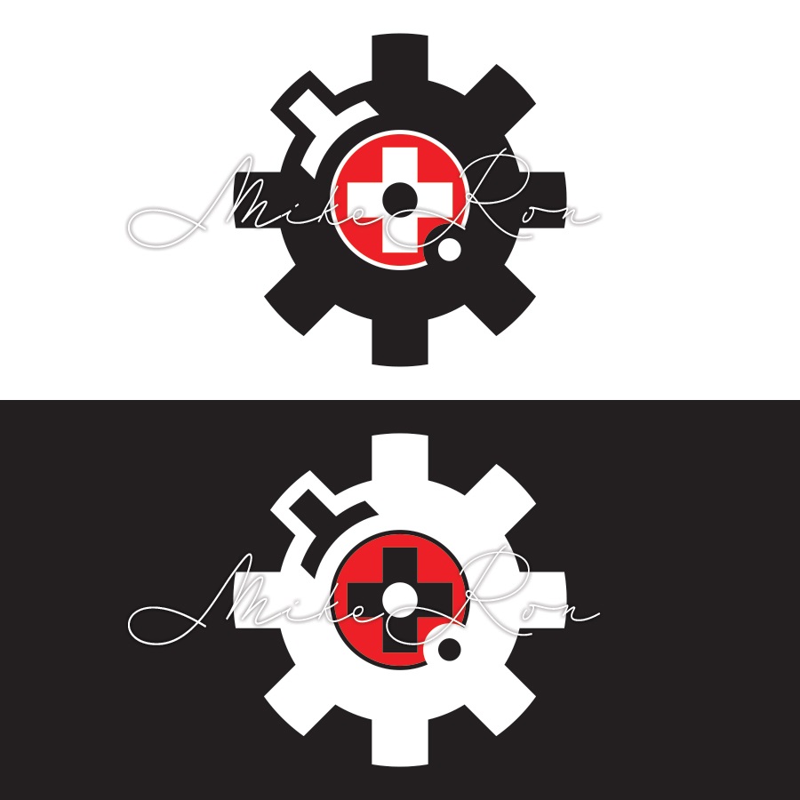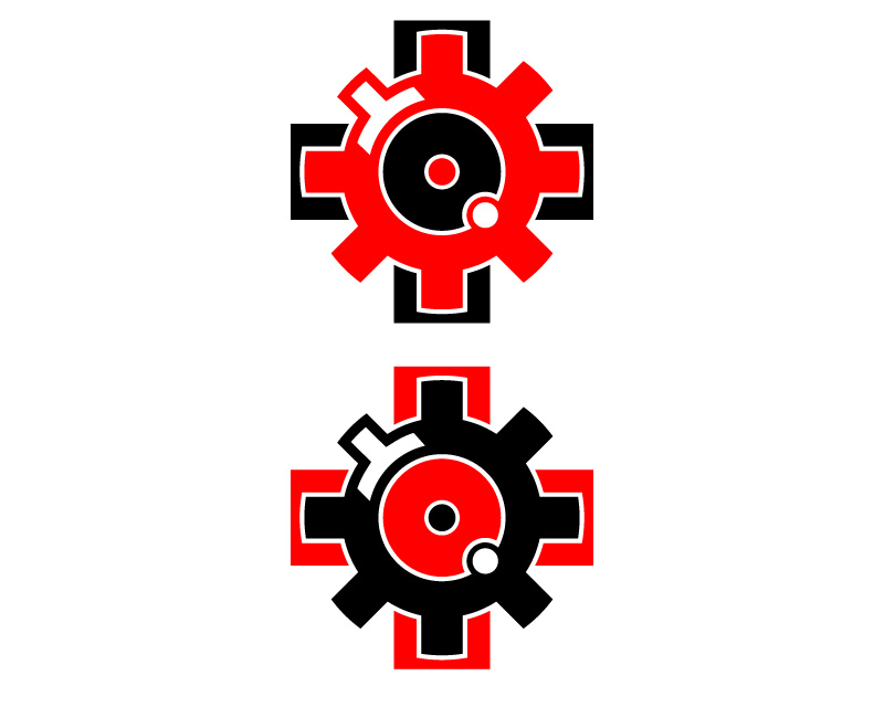 I make a product called the ARFAK that is a field repair kit for an AR15 rifle. ARFAK stands for "AR First Aid Kit." I want a logo that combines the concepts of the AR15 bolt face and the first aid red cross. I want a round logo, no text. Colors are to be black, red, and white.