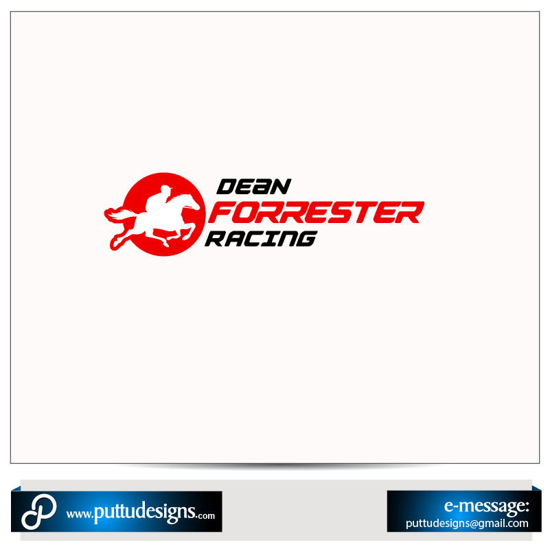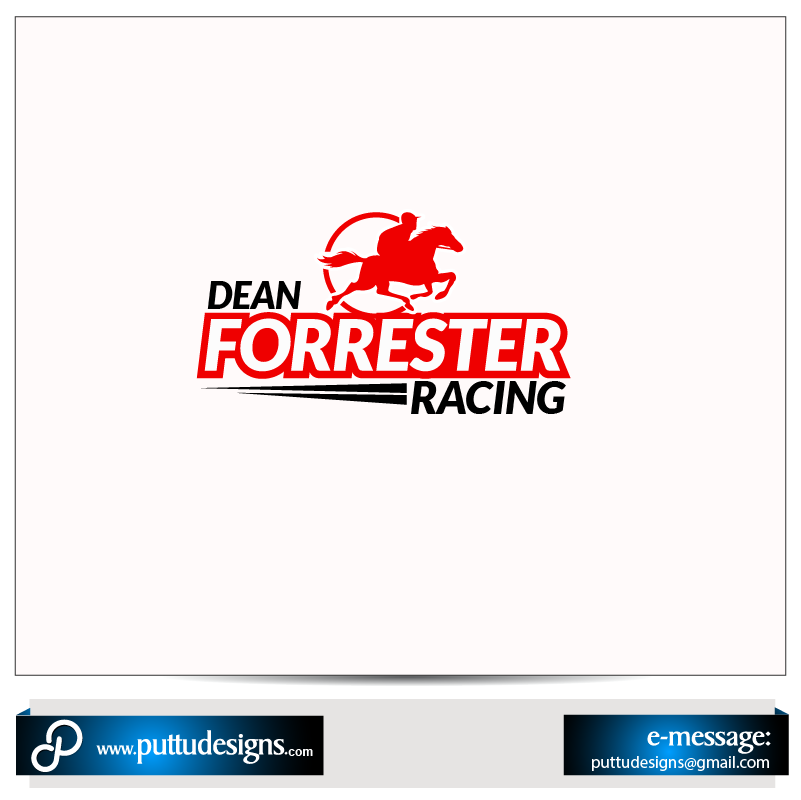 Hi All I am after a logo a horse symbol on the right hand side. I’d like the writing in red with a white background and the layout to be three tiered like this Dean Forrester RACING Maybe the Forrester a bit bigger then Dean and Racing smaller with the Racing in capitals too but smaller font. Thanks