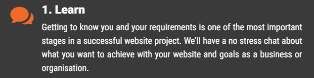 Keep the Wellington photo - reinforces the homegrown factor which is important. If you've decided to buy local you need to know the company really is local. The text seems to cover all the bases This is probably the only bit that caused me concern - will a potential customer think it's them that have to do the learning? or that the only opportunity to share their goals is during that "no stress chat". I'm guessing "no stress" means "no obligation" but who is paying for that time? Does it come out of your sales budget or is it added to their bill? I liked the video testimonials but am concerned that Riverridge use Joomla and are at freeparking (ugh), Acorn don't have a website, childforum (I felt dirty googling that one) aren't on WordPress and their hosting is in Auckland. Your testimonials are repeated over and over but there's no photo of the team proudly standing in front of the building, in your conference room etc. It would add credibility and people like to see who they are talking to. Ideally, in this section I'd have the two people a prospective customer are most likely to deal with a personal statement - "I get a huge buzz seeing a customer succeed online", that type of thing.