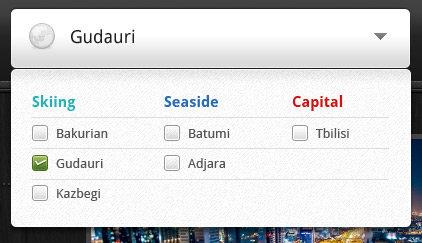 Hi, I've this select: <select id="control_1" name="cat"> <optgroup label="Mountain"> <option>Gudauri</option> <option>Bakuriani</option> <option>Svaneti</option> </optgroup> <optgroup label="Seaside"> <option>Batumi</option> <option>Kobuleti</option> <option>Kvariati</option> </optgroup> <optgroup label="Capital"> <option>Tbilisi</option> </optgroup> </select> Code (markup): I want jquery to rewrite this into a ul li structure. The whole thing should be under 1 single dropdown, but optogroups should be separate ul's with different ids so I can make them different color. I will do css myself, you just need to write jquery for me. Final result I want to attain is this: Functionality: 1) It should add display:none to select that we are rewriting. 2) Should work cross browser and on ie-7 3) Should degrade gracefully when javascript is disabled (hence #1 point display:none. 4) Checkboxes can be a background, just make jquery add special class to selected items. So I can style them with checkbox on/off. 5) Code should be clean and short 6) Don't get confused, this is NOT a multiple select. So only 1 checkbox is clickable and selectable per drop. Please don't waste my time, contact me if you really can do this. I will pay 25$ for this. S.