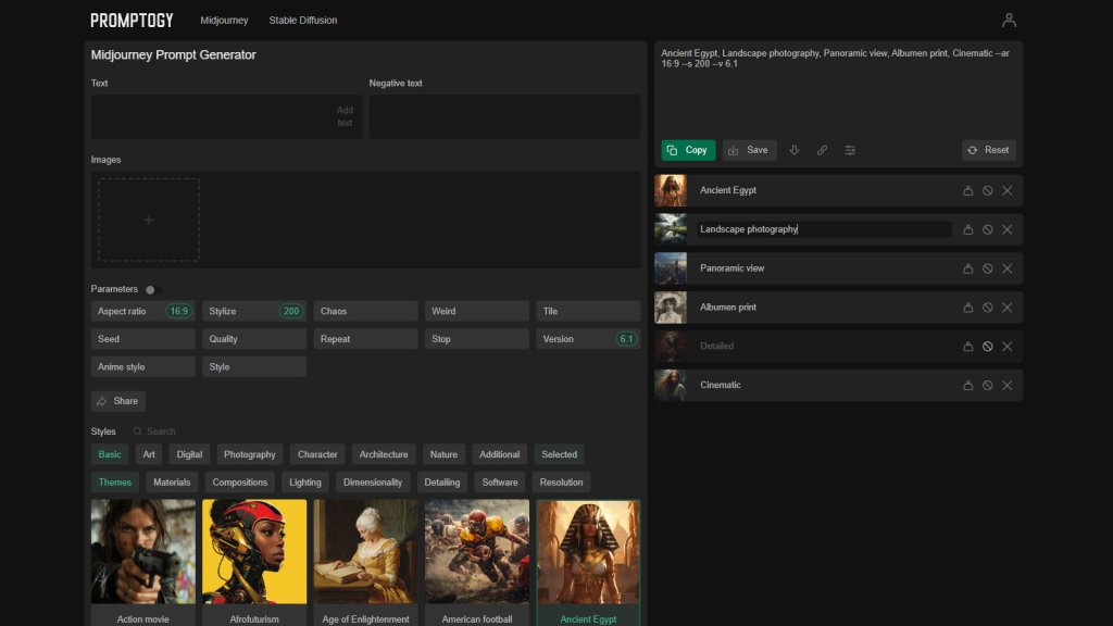 Cheers, everyone! I developed a Midjourney prompt generator tool. I am looking forward to hearing your feedback and suggestions for improvements. [promptogy.com]