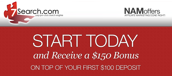 NAMoffers is offering all Digital Point members a special deal with 7Search! 7Search has been active within the performance marketing space for quite some time. In fact, many of you reading this may have already created success with their traffic! NAMoffers is here to provide insights on what is and isn’t working with 7Search. As well, lend support to better understand how to setup a 7Search campaign within their platform. Anyways, lets get down to the Special Deal!!! Step 1. Create an affiliate account with NAMoffers – referral ‘7Search/Digital Point’ Step 2. Contact NAMoffers to discuss affiliate application. Step 3. Create a new 7Search account – must use the NAMoffers referral link. Step 4. Deposit $100.00 Step 5. Receive $150.00 BONUS. $50 from 7Search & $100 from NAMoffers. What do you say? Interested in testing 7Search for basically FREE? Please see our recent blog post for a full overview – please find link below ☺ http://blog.namoffers.com/7search-com-is-now-collaborating-with-namoffers/ Feel free to PM for more information! Please leave your comments, feedback, and ideas in the comments section!