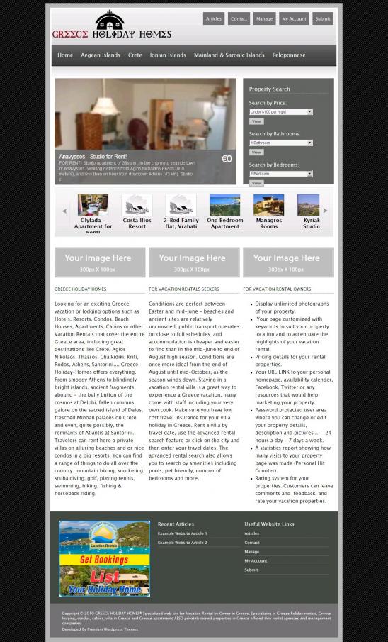 I need 3 images 300x100 pix for here: you will see the image placeholders in the middle of the websites The images design must fit to the site, and very important must have a greek feeling (use greek looking fonts and some Greece icons) The subjects for the 3 images are: "Holiday apartments and villas in Greece" "Way more value than a hotel could offer!" "Homeowners, receive more inquiries" If you can do this - please give me an offer. Need this done fast!