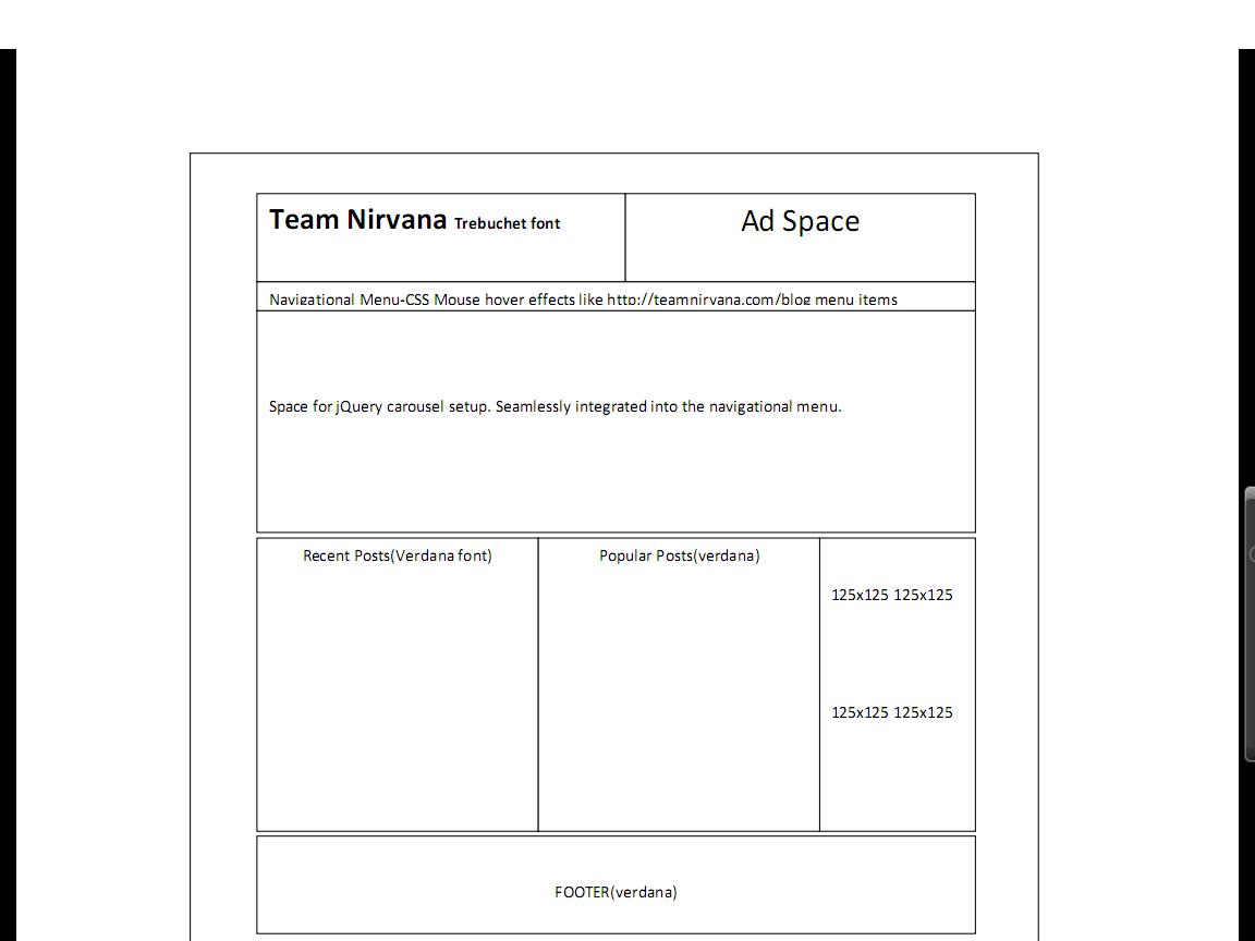 I have a design in mind and the following is a rough layout of it. I need a visual representation of it in HTML and CSS with a professional appeal. No crappy CSS works please. Fonts to be used are specified in the image itself. I want white background and #009de5 for links and Mouse-over would be: 3388cc. Can any web designer with a good portfolio assure me that he/she can do it? Please provide your portfolio(MUST) and the price quote(MUST) in order to take up this task. Also let me know the TAT for the entire project. Thanks. Note: PMs without portfolios and price would be discarded.