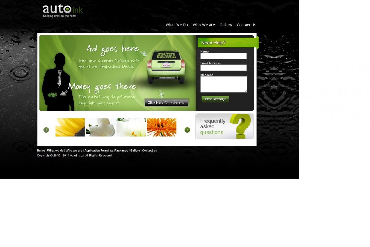 Must be EXPERIENCED and CREATIVE. Hello, My company is called Autoink, and we sell advertisement decals for vehicles. We've been trying to complete our website autoink.ca for a long time now, and finally want to finish it COMPLETELY this week. We hired a promising, skilled designer originally, but he had to back out prior to completion due to health reasons. We have all his files in a .zip, while the rest are on our website. We are looking for competent and CREATIVE individuals to complete the site as well as give us tips on how to enhance it and maximize it's potential. Here is a list of what needs to be done to the site: -need to improve compatibility. looks slightly different on all browsers, size, some text/buttons get cut-off etc. Worst of all is the alignments. - add more linking pages - get images for gallery. Need to be high quality pictures showing vehicle from behind, clean view of the back window. - redo the application form, make it more professional and modern. - botton navigation should say "contact us". Also, "why us" needs to be deleted and replaced with "who we are". - make sure all pages are validated and create keywords for header code etc. - when the user is on the faq page none of the Navi buttons options should be selected which they are. (I attached a screenshot of the updated site) Overall, the site is close to being complete, but there are minor imperfections that make the site seem un-professional. It SHOULD look Modern and Easy to use. Please be vocal in voicing ANY suggestions for the you may have for the site or any concerns. If you have not read this entire post, please don't bother responding. Serious, experienced designers only please. After reading ALL of this, you should have a good idea what needs to be done. Dont even bother replying on Guru, rather just add me on Gtalk or email me at: I look forward to speaking with you. Jordan