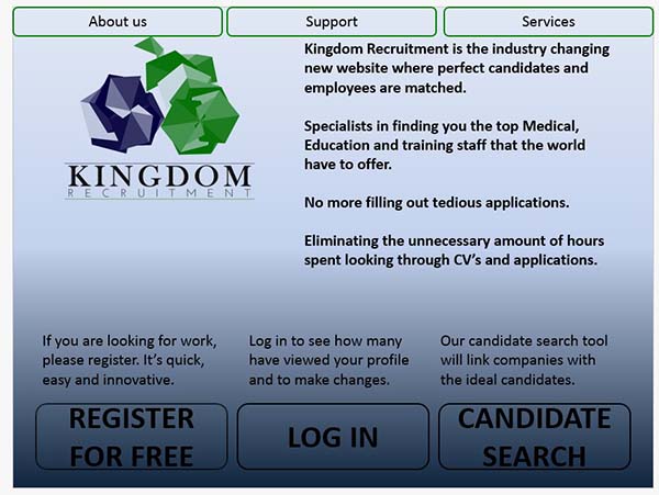 Hi, I am a web designer and usually i take themes and alter them. So i am aware of the basics and how to alter any theme and issues related to it. But currently i don't have time and i need a designer to make a site for me. I need a High Quality Job Recruitment company website theme on wordpress. My domain is "www.kingdomrecruitment.com" for which i need to create a site. The site needs to have an option for people to upload their Job CVS and should also have an option for us to list Job vacancies. The Homepage of the site should look like the attached file. I shall pay $100 for this job. I don't want a designer who is not open to unlimited revisions of the site. he should be ready to take new additions into the site and i shall pay only after i am completely convinced with the site design. Further details of the design, i shall discuss with the right candidate. Interested designers, please email me at