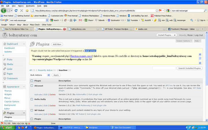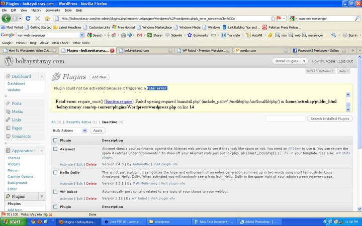 I am getting there 2 error when i try to active wprobot plug-in . tell me what is wrong the files are attached Thanks