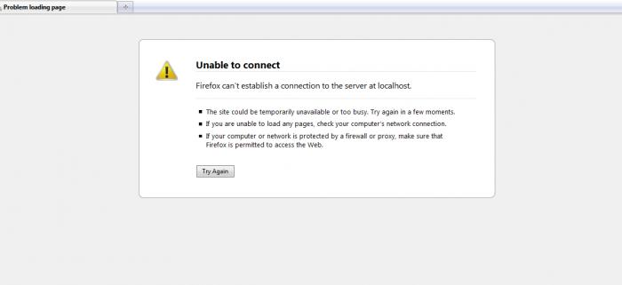 Assuming your using XAMPP, and firefox... Make sure you have an internet connection and/or XAMPP is enabled. To enable XAMPP: Start the 'XAMPP Control Panel' and click 'Start' under 'Apache'. Then once started, refresh firefox, an all should be fine.
