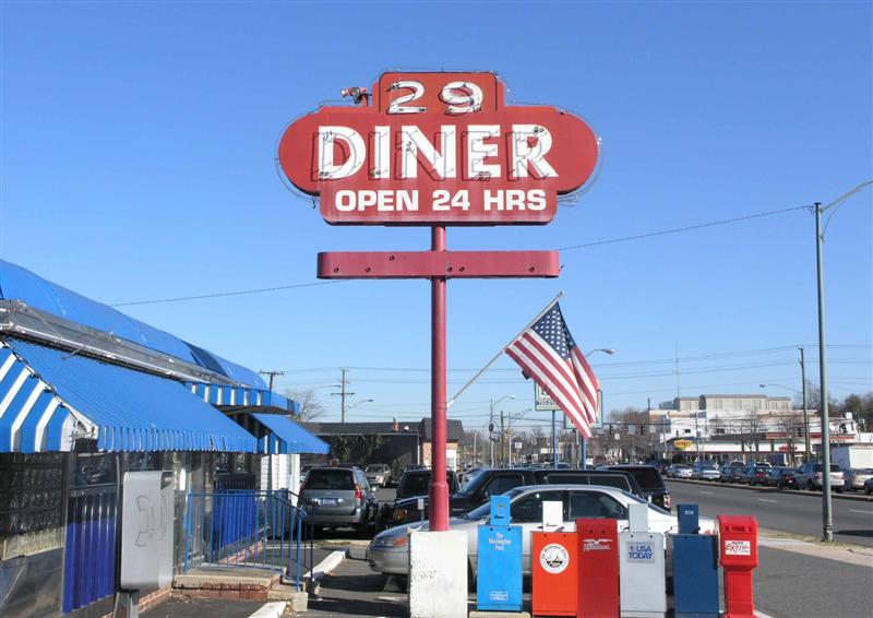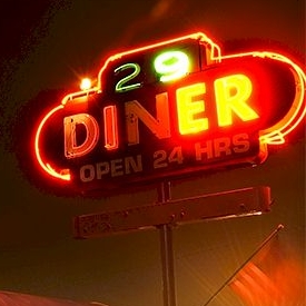 We have acquired a restaurant and we want to print some road side signs to announce we will be "Coming Soon!" or "Reopening Soon!" The place is a classic diner in business since the 1940's. The name is "29 Diner". The primary color used over the years has been red. We want American patriotic colors Red White Blue. Please have a look at the sign images attached and try to match the look and give me something that will look great on a road side sign and a large version inside the front window. http://www.29diner.com facebook.com/29diner Thanks! David