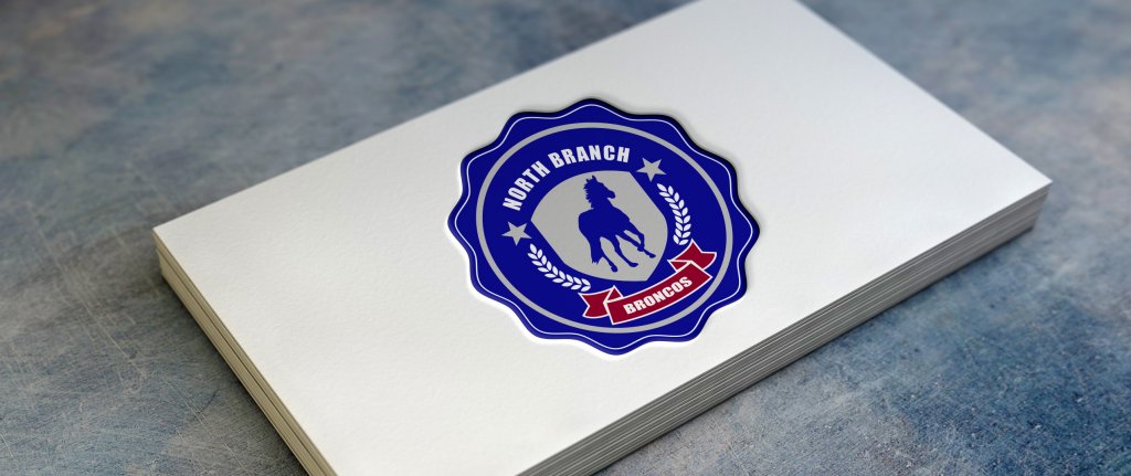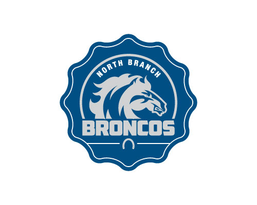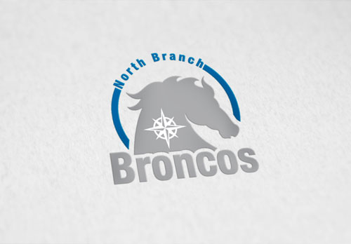 OK, so after speaking with our board director, we have some ideas about this design. We like this style horse. The grey one to be exact and it looks mean and tough. So we want this bronco head with a horse shoe as the arch and "NORTH BRANCH" in the arch of the horse shoe. Then "BRONCOS" on the bottom like you have. We want the font to be bold and aggressive. I hope to see a revision soon!
