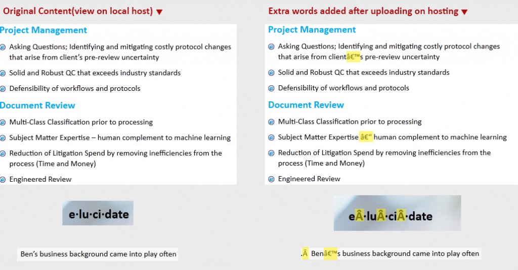 Hello Guys, i have created a information website recently for a company. Website has lot of contents. Website contents is good and perfect on my local host but when i uploaded to clients hosting then lot of errors(extra words) added automatically. I have attached a screen shot of those errors. Can you please anybody tell me why it is happening and how i can fix it ? Thanks in advance