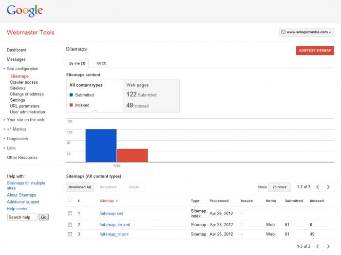 Dear readers, I am having a problem with our company website. I will outline the basic structure first, before addressing the problem. The website is located at http://www.sologicmedia.com, is multilingual and uses URL rewriting through .htaccess. The Dutch version is at http://www.sologicmedia.com/nl, the English at http://www.sologicmedia.com/en. One page would be "Company" at http://www.sologicmedia.com/en/company, and in Dutch at http://www.sologicmedia.com/nl/bedrijf. Language selection is based on "Accept-Language", unless a specific URI that starts with "/en" or another language is called, in which case it sets a cookie. All old links and wrongfully indexed URLs which have been moved now, have been replaced with 301 Moved Permanently messages and a redirection in the header. I have created a sitemap.xml, which is at http://www.sologicmedia.com/sitemap.xml, and is a "sitemap index" linking to /sitemap_en.xml and /sitemap_nl.xml. I have created a robots.txt, which also mentions the sitemap.xml file. Nearly all pages (at least all that matter) have their own unique META description and META keywords. All content is unique, and translated from the Dutch into English. H1, H2 and TITLE tags have been properly set Language tags have been properly set in the source, telling the browser/googlebot which language the page is in. There are no syntax errors in the robots.txt or the various sitemaps. Google confirms this. There is no mixed content, the English part only contains English text, the Dutch only contains Dutch. Now, on to the problem. It reads the sitemaps just fine, but only indexes the Dutch version, as you can see in the attached screenshot. Now I could've posted this in the "Sitemaps" forum but I don't think this is a sitemap problem since it can read the sitemaps just fine, it just neglects to index the English version. I have resubmitted the sitemap a few times now. The new website has been up for a few days and nearly all Dutch links are replaced, but the English version just won't get indexed. I don't know if Google has penalized us, I don't think so since it does index the Dutch version. I cannot find anything i've done wrong, I thought I had made a very well optimized website but as it turns out, I probably didn't. If someone can help or point me in the right direction, I would be very thankful.