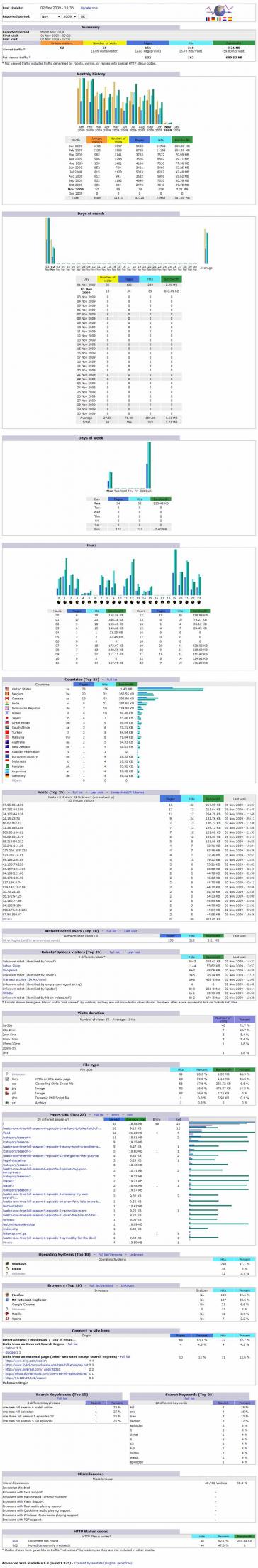 I don't have Analytics installed on the site, but I'll take detailed screens of AWstats.
